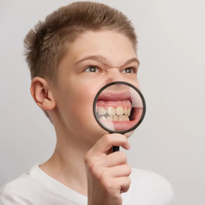 Observa alterações na mordida, como dificuldade de mastigar ou encaixe irregular.